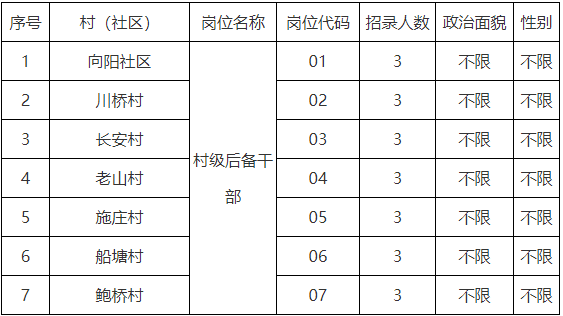 全镇公开选拔21名村(社区)后备干部,详见下表。